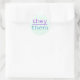 Autocollants Pronoun avec une tournure amusante : un arrière - plan à la menthe avec un texte varié de couleur pastel. Idéal pour les personnes trans, enby, genre fluide ou non conformistes dont les pronoms sont eux / eux ! Voir nos autres autocollants pour allys : normaliser leur utilisation pour tout le monde est un grand soutien. Fonctionne sur les autocollants carrés et ronds.