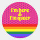 Sticker Rond I'm Here and I'm Queer LGBT Rainbow Flag