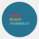 Sticker Rond I'm Nice Because I'm Savage Af Funny Quote