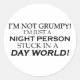 Je ne suis pas Grumpy ! Je suis juste une personne de nuit coincée dans un monde de jour! Ne vous sentez-vous jamais en décalage avec le reste du monde Voir toutes nos créations sur tasses, tasses, tee - shirts, sweatshirts, casquettes, et autres cadeaux et vêtements.