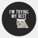 Sticker Rond I'm Trying My Funny Crying Cat Meme Men Women Kids