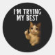 Sticker Rond I'm Trying My Funny Crying Cat Meme Men Women Kids