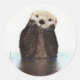 Stickers avec une photo d'une jolie loutre debout dans l'eau avec ses pattes tenant son visage. Sa tête coincée à gauche avait l'air douce et adorable.