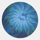 Sticker Rond Imaginaire Fleur Bleue Motif, Art Fractal Abstrait