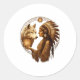Sticker Rond Indian Native American Woman With White Wolf Vinta