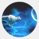 Sticker Rond Indian wolf and the full moon