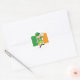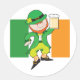 Un leprechaun danse avec une tasse de bière à la main. Derrière lui se trouve le drapeau irlandais. Customisez ce produit avec un nom ou un message pour le rendre vraiment unique