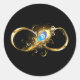 Or, symbole brillant de l'infini, décoré de bijoux plumes paon avec turquoise sur arrière - plan noir.