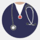 Enveloppe de remise de diplômes d'infirmière créative, fête en faveur des étiquettes et des autocollants-cadeaux d'infirmière avec gommages d'hôpital bleu marine et art stéthoscope.