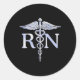 Sticker Rond Infirmière inscrite RN Silver Caduceus en noir