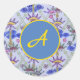 STICKER ROND INITIAL PERSONNALISÉ AVEC FLEURS BLEU