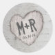 Sticker Rond Initiales de coeur sculpté rustique Mariage d'arbr