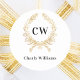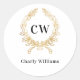 Sticker Rond Initiales de monogramme en or blanc couronne