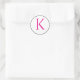 Sticker Rond Initiales de monogramme Rose Noir Blanc Simple Min
