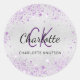 Sticker Rond Initiales de nom en paillettes violettes argentées