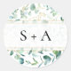 Conçu pour s'harmoniser avec notre collection de mariages Eucalyptus Greenery, cet autocollant Initials personnalisable présente un feuillage vert à l'aquarelle vert menthe avec un cadre géométrique blanc et or. Pour effectuer des modifications avancées, accédez à l'option "Cliquez pour customiser plus loin" sous Personnaliser ce modèle.
