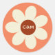 Sticker Rond Initiales Mariages à fleur de marguerite rétro