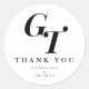 Célébrez votre mariage avec ce design mariage minimaliste et moderne merci sticker en noir et blanc, avec vos initiales personnalisées dans un design basé sur la typographie. Voir l'ensemble de la collection sous "Initiales minimes".