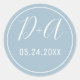 Sticker Rond Initiales simples et élégantes de mariage bleu pou