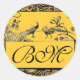 Sticker Rond INSÉPARABLES mariages MONOGRAM noir et blanc jaune