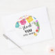 Un autocollant de remerciement coloré Fiesta avec un thème de bannière mexicaine et un design de cactus floral. Cet autocollant de faveur de fête peut être personnalisé avec votre propre nom de signature.