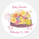 Tortue blanche rose et fleurs colorées sur la coquille illustrées sur les stickers de Baby shower personnalisés. Personnalisez l'autocollant rond avec votre propre libellé pour un BABY SHOWER à THÈME ANIMAL mignon ou un BABY SHOWER TURTLE AMOUREUX ! N'hésitez pas à modifier les polices, les couleurs et les tailles du texte. (Contactez ujean4791@gmail.com pour effectuer un travail personnalisé et/ou faire correspondre des éléments.))