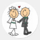 Un dessin de mariée en bâton et de mariage de marié sur les autocollants et les cartes.