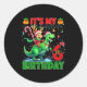 Sticker Rond It’s My 6th Birthday Xmas Reindeer Riding Dinosaur