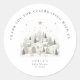 It Takes a Village Snowy Whimsical Baby Shower Classic Round Sticker - coordinate perfectly with other products in the collection. Stickers read - Thank you for celebrating with us and are personalized with Mother to be's name, Baby Shower and Date
