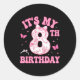 Sticker Rond It's My 8th Birthday Nk Coquette Bow 8 Year Old Bi