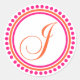 Sticker Rond J Monogramme (rose / cercle orange de points)