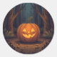 Sticker Rond Jack O'Lanterne Jaillissant Dans La Forêt