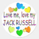 Les amoureux de Jack Russell peuvent partager leurs véritables sentiments sur leur chien avec ce Love me, amour mon Jack Russell design coloré avec les coeurs.