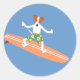 Sticker Rond Jack Russell Terrier Surfer Longboard