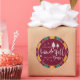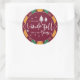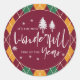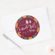 Sticker rond classique de Noël Joyeux Joyeux Joyeux Joyeux Jacquard Jaune Orange Jaune. Le design a une citation de Noël "C'EST LE TEMPS LE PLUS MERVEILLEUX DE L'ANNÉE" écrit en jolies polices sur un arrière - plan de Jacquard vert orange jaune. Pour toute personnalisation supplémentaire, n'hésitez pas à me contacter à l'adresse mypaperlove2021@gmail.com