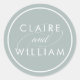 Nos autocollants de mariage personnalisés en jade grisée élégante sont une touche de finition parfaite à vos invitations, faveurs et cartes de remerciements. Le design présente les noms du couple en lettres blanches croustillantes sur un arrière - plan vert jade poussiéreux avec un léger bleu moulé, avec "et" dans le script de calligraphie décorative.