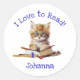 Ce mignon petit chaton dit, I Love to Read! Voici un adorable chaton tabby à aquarelle, orné d'une couronne de fleurs bleues minuscules et d'une coccinelle rouge, et faisant sa chose très préférée : lire un livre ! Le texte bleu clair correspond à son marqueur bleu ruban. Ensemble, c'est une image douce et aimable de l'amour pur de la lecture d'un enfant. Le voici sur quelques autocollants.
