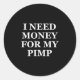 Sticker Rond J'Ai Besoin D'Argent Pour Mon Pimp, Amusant, Blagu