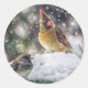 Une cardinale féminine dans la neige semble garder son oeil sur l'autre oiseau.