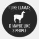 Sticker Rond J'Aime Les Llamas Et Peut-Être 3 Personnes Drôle A