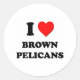 Sticker Rond J'aime les pélicans Brown