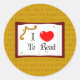 Ce que j'aime lire design comprend un livre antique en cuir avec des accents en filigre d'or avec un script qui dit "J'aime lire" avec un coeur rouge vif. Ce design de lecture est dédié aux amateurs de livres, aux vers de livres, aux nouveaux lecteurs, aux bibliophiles, aux bibliothécaires, aux amis de la bibliothèque et à tous ceux qui se sont retrouvés dans un grand livre!