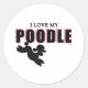 Sticker Rond J'Aime Mon Poodle Noir
