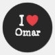 Sticker Rond J'aime Omar coeur personnalisé