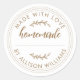 Rustique, moderne et simple pâtisserie maison ou collant de conserverie à la confiture avec le texte fait maison, fait avec amour et votre nom en or stylisé à la main calligraphie et typographie sur un arrière - plan blanc. Ajoutez simplement votre nom au étiquette. Inscrivez les noms des produits sur les autocollants lorsque vos produits sont prêts. Conçu exclusivement pour vous par Happy Dolphin Studio !