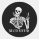 Sticker Rond Jamais mieux Skeleton Drôle Halloween Skull