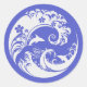 This elegant circular sticker beautifully blends traditional Japanese art with tropical Hawaiian flair. Featuring a stunning white "Seigaiha" (wave pattern) motif, it's accented with delicate hibiscus-like flowers and adorable dolphins.