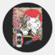 Sticker Rond Japonais Samurai Chat Guerrier Japon Ninja Kitten