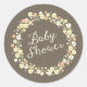 Ce joli design de couronne de fleurs en jaune tendre, sauge, pêche et crème d'ivoire encercle la jolie typographie "Baby shower" sur ce charmant sticker de Baby shower neutre genre qui est monté contre un arrière - plan brun sable délicat. Élégant et sucré, c'est un accessoire parfait pour tout Baby shower célébrant une fille ou un garçon ; et particulièrement approprié pour une fête de jardin, une fête du thé ou une douche de printemps. Utilisez comme des joints sur les enveloppes, transformez-les en toppers de cupcake ou en pique-nique, ou décorez les fours de douche.