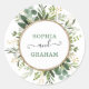 Cet autocollant rond élégant présente une belle aquarelle verte en vert et or, complétée par des lettres modernes et élégantes. Utilisez les champs modèles pour ajouter votre propre libellé. Veuillez cliquer sur le bouton "Customiser davantage" pour réorganiser les éléments si nécessaire.
